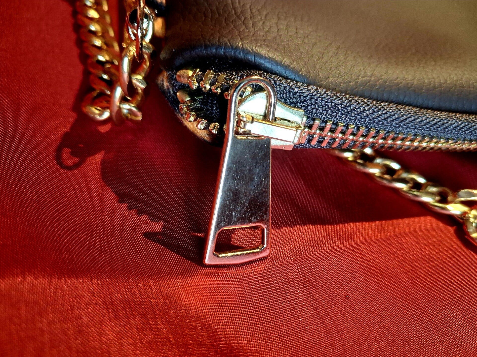 Tracolla a catenella dorata con moschettoni (removibile se si desidera portare la pochette a mano)