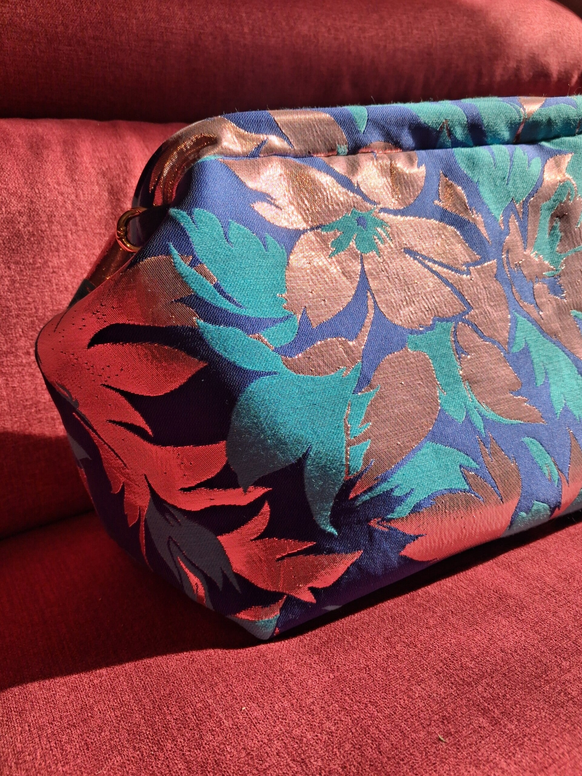 Elegante e senza tempo, questa borsa artigianale in tessuto jacquard cattura lo sguardo al primo istante. La sua silhouette, ispirata all’iconica forma a baguette, avvolge con linee morbide e raffinate, mentre la trama ricercata del jacquard dona profondità e carattere ad ogni dettaglio.